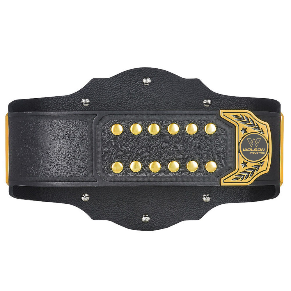 Material: Crafted from high-quality materials like genuine leather, metal plates, and intricate detailing, championship belts exude grandeur and authenticity. The leather straps are typically adorned with ornate metal plates featuring engraved or embossed designs, showcasing the championship’s significance.