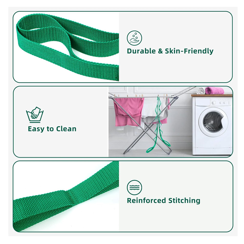 Material: Crafted from durable and flexible cotton or nylon, our yoga straps offer both strength and comfort. Their soft yet sturdy construction allows for gentle support during stretches without digging into the skin.